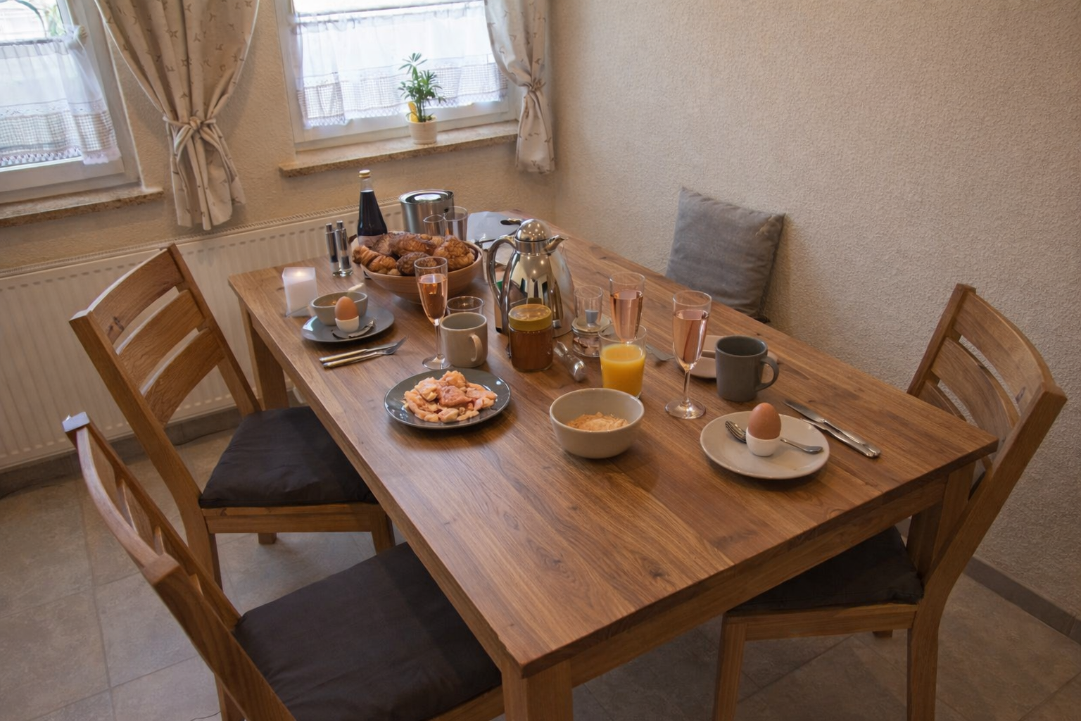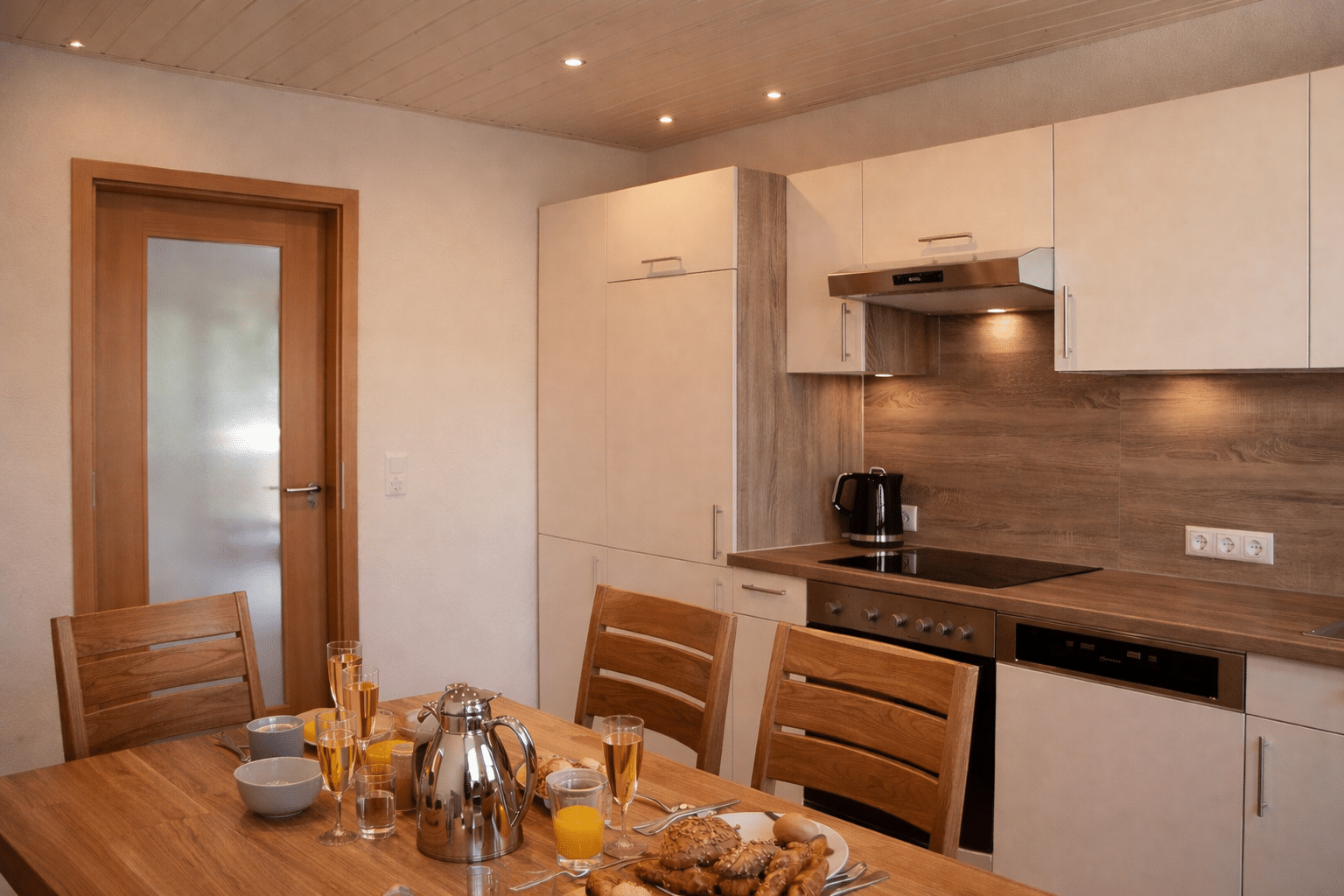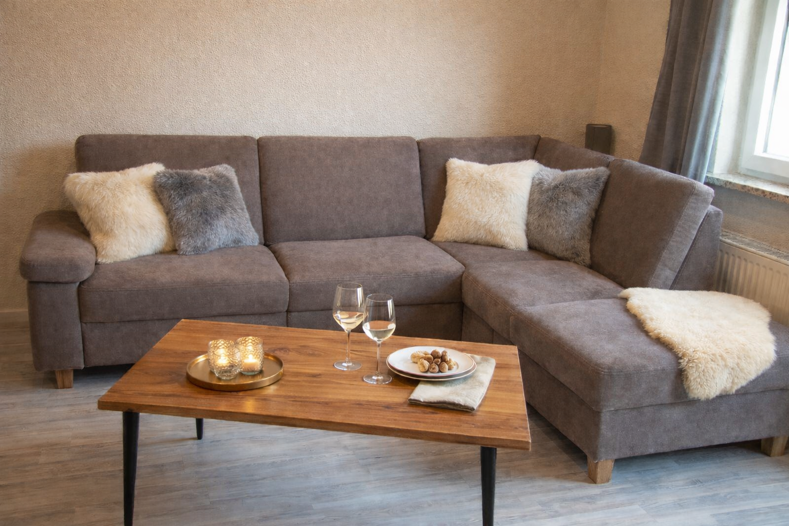 Die Wohnung ist ideal für bis zu vier Personen und überzeugt durch eine hochwertige, geschmackvolle Einrichtung mit warmen Holzmöbeln und liebevollen Details.